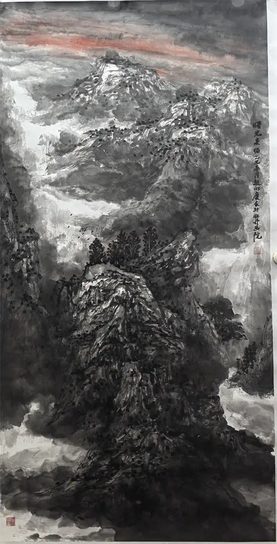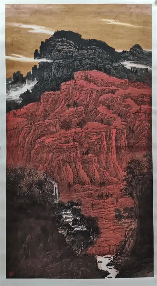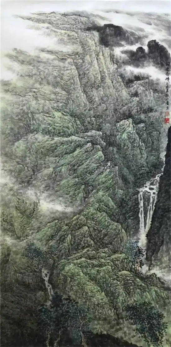 中国山水不同于风景画,不是对山川的简单再现,而是画家内心世界的情感再现。正所谓石涛的“夫画者,从于心者”。国人论艺术有写实与写心之说,但写实必须有写生的基础,通过心动神明陶治,从而形成艺术形象。而赵水庆十分注重对“外师造化,中得心源”的理解,他的作品不管是鸿篇大作还是小品写生,都在努力尝试新传统、新水墨的技法,从全新的角度引领读者,解读山水意境,这就是他在画画中传达的灵气、厚气、大气的太行风韵,而不是一味的追求奇险或程式化的流行符号。