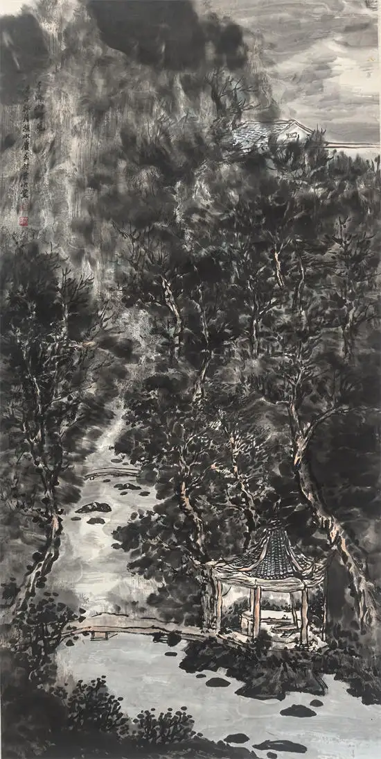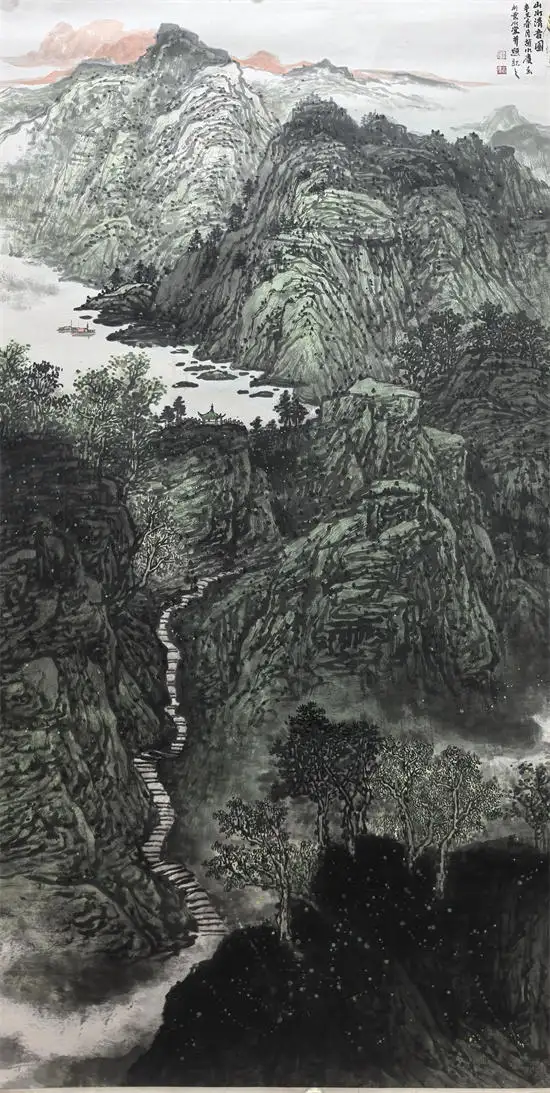 着重表现山水的灵动和润泽,保持山水本身的风韵,那就是赵水庆山水画的魅力所在。