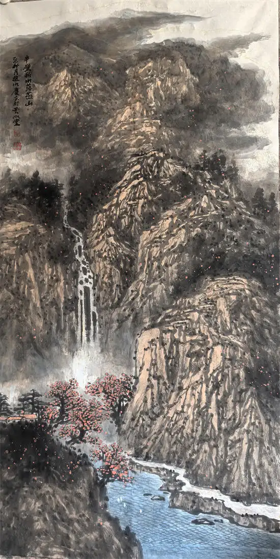 和水庆相识在古城西安,八年来我一直关注这位长年与山水亲近,与大山比邻的画人。他曾涉足过无数名山大川,足迹遍布大江南北,罕有人比。师承上多次问道京华,交游当代画坛翘楚。他勤奋多思,不断开拓眼界,锤炼笔墨,且学有所成。他的作品不求猎奇,也不囿于固定的模式,每每墨随心动,境由笔生,以自己独特的技法,让宣纸承载着苍润厚重、沉酣苍劲、幽深壮阔的美妙意境,让观者感受到现实与心中之景相结合的山水性情,主观的情感性灵与客观的景物意境互相感应、交融,使其作品景真情切。特别看到他的太行山写生,古桥流水,群峰耸立,气象万千。或云起如幻,或绝壁千仞,或飞泉瀑吼,或有烟火气息扑面而来的崖上人家。虽是写生作品,但画面平淡中求奇险,重山复水,开合有序,繁密而疏朗;结构严谨,沉稳而机变,生动地传达出太行山茂密、厚重、苍茫、滋润的情调气度。