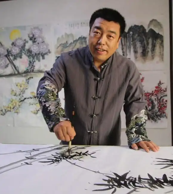 周基伟自幼便对书画艺术怀揣热忱,常年临摹诸家名帖字画,潜心钻研笔墨技法,虽初时未能尽得精髓,却始终坚守这份热爱。后有幸拜入“中原菊翁”李国英先生门下,自此开启系统的书画研习之路,主攻写意菊花,兼修山水与其他花鸟题材,在师法古法的基础上博采众长、融会贯通,逐步摸索出契合自身心境的创作路径,于笔墨间探寻艺术真谛。