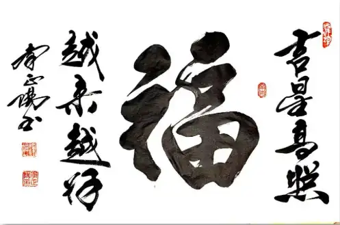 若仅守传统,难成大家。李正阳的突破,在于将“神魂”作为书法的灵魂内核。其代表作《龙》字,笔势“如龙腾云飞,似湖水见底”,以磅礴墨韵演绎五千年文明史诗,线条中藏“动中有静,静中含动”的哲学思辨,让观者于笔墨挥洒间,见华夏文明的奔涌脉络。《寿》字更以“仙女捧桃”的意象造型,将文字符号转化为视觉舞蹈,堪称“以美为体,以民族为魂”的典范。