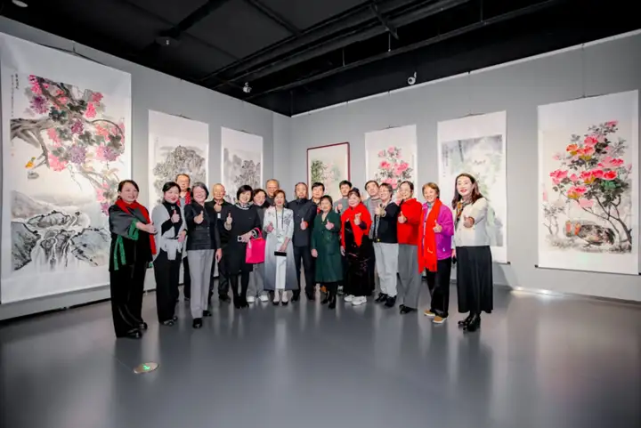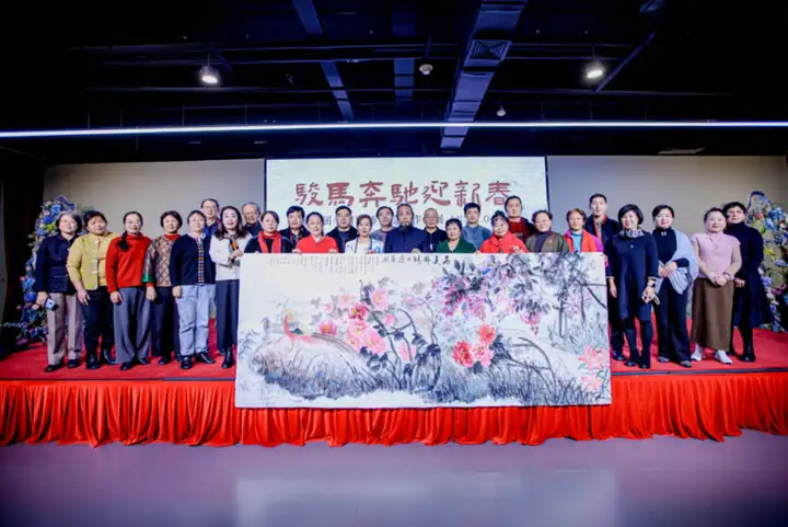 现场亮点纷呈,李树宝、姜雪梅两位老师带领:郑雪姣、陈斌、张守兰、高星花、王淑芹、汪文德、陈璞、马郁、李春华、郭秀云、黄梅珍、刘碧绮、王文红、刘永信、王戈梅、吴卓、路振军、杨科群、张聚志、王佳玫、李勤、王贤铭、包罗波、殷玉兰、张青鸽、位孟发、雷建、卢国华、赵荣、郝清华、宋莉群、张景莉、崔洪香、陈建华等33位弟子 共同展示了联袂创作的丈二大画《华夏锦绣之迎春图》,恢弘的尺幅与精湛的笔墨,赢得满堂喝彩。