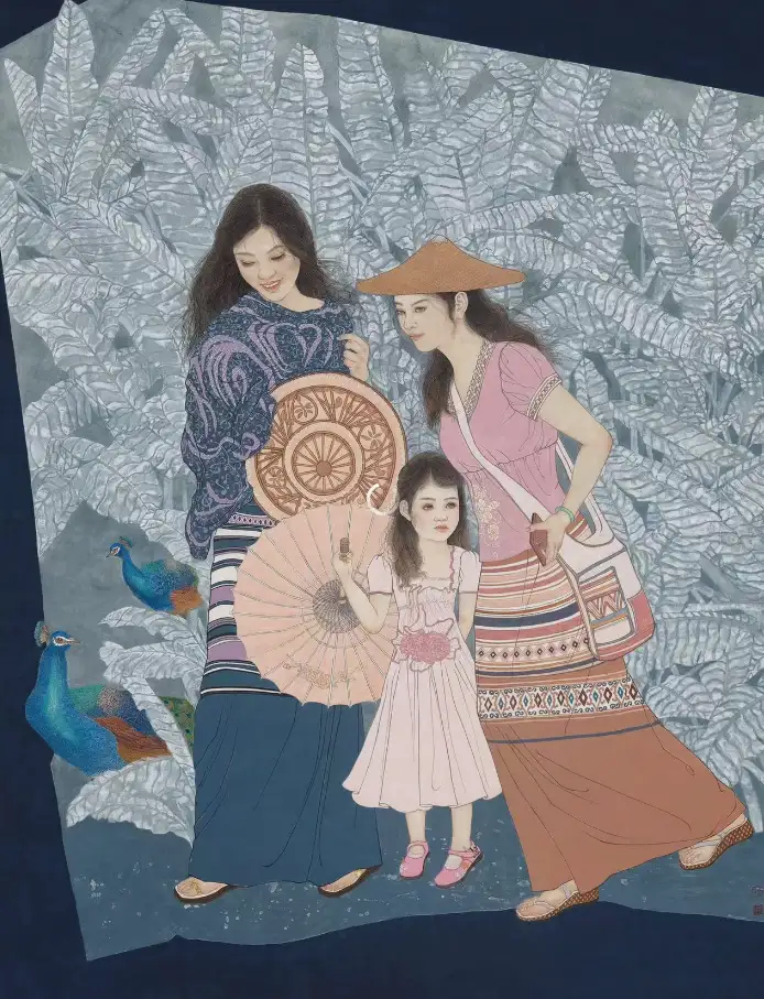 崇雨竹的艺术成就,不仅体现在其精湛的笔墨技法与独特的艺术风格上,更体现在她对时代精神的把握与对社会现实的关注。她的作品题材广泛,既有传统的花鸟山水,也有反映时代风貌与社会生活的内容。作品《傈僳族非遗文化传承》聚焦少数民族的非遗文化,通过细腻的笔墨展现了傈僳族非遗文化的独特魅力,体现了她对传统文化传承的关注;《国粹传承》则以京剧元素为题材,彰显了国粹艺术的博大精深,表达了她对传统文化的热爱与传承之心;《都市乐章》则将目光投向现代都市,描绘了城市的繁荣与活力,展现了新时代的精神风貌。这些作品紧扣时代脉搏,具有强烈的时代感与现实意义,体现了一位当代艺术家的社会责任与文化担当。