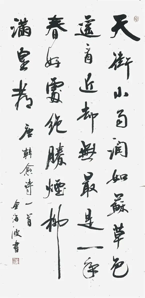 金海波的行楷艺术,可视为一种“有根的创新”。根,深扎于千年书法传统与文化精神;新,萌发于个人的才情、学养与时代感悟。他的探索回应了一个重要命题:在当代,传统书法如何保持其本质又焕发新机?金海波以他的实践表明,答案在于对核心价值的坚守与对个人表达的真诚。