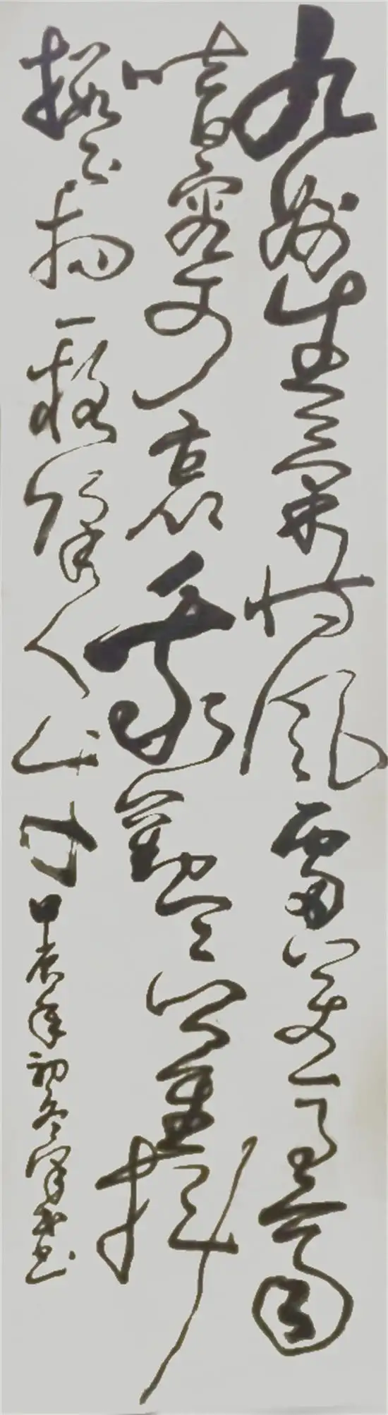 贺泽民先生的草书作品,尽显狂草不羁韵味。笔画如游龙走蛇,墨色浓淡干湿交融,线条张力十足,将草书的灵动奔放与抒情性发挥得淋漓尽致。布局大开大合,在随性中见章法,彰