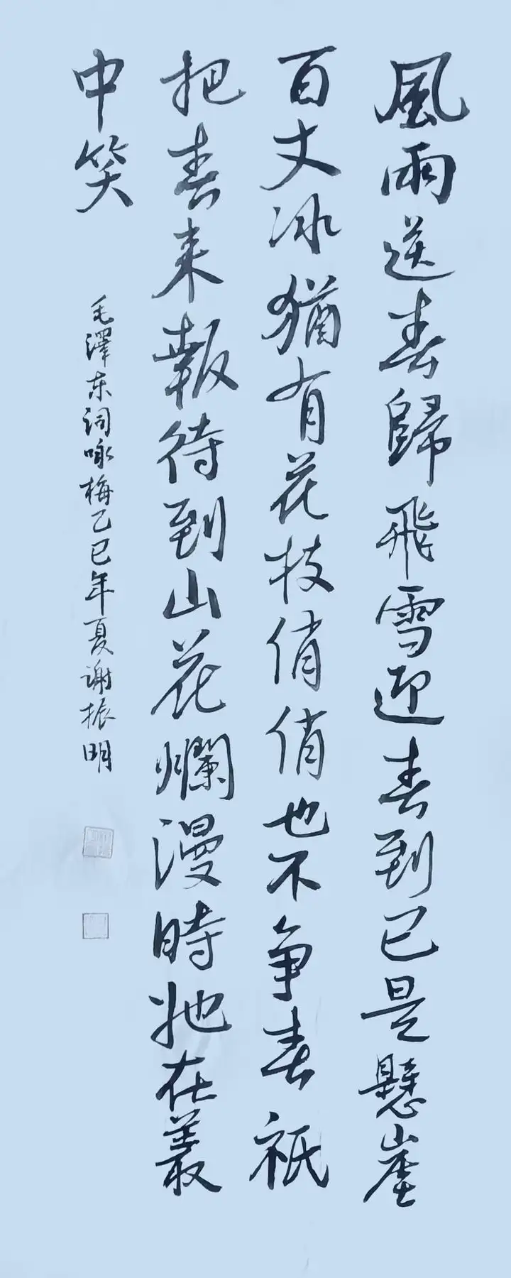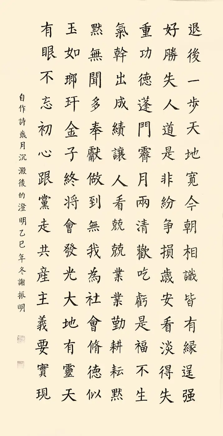 如今的谢振明,依旧在艺术之路上笃定前行,以笔墨为语,以诗词为怀,在书法与文学的世界里不断深耕,用作品传递文化力量,用行动诠释艺术初心。他以自身的艺术实践证明,唯有坚守传统、深耕不辍,方能在艺术之路上行稳致远;唯有德艺兼修、内外兼修,方能成就真正的艺术高度。相信在未来的日子里,谢振明必将继续以翰墨抒怀,以诗心润笔,创作出更多兼具艺术价值与文化内涵的精品佳作,以笔墨立风骨,以作品铸丰碑,在当代艺坛留下更为深刻的印记,为中华优秀传统文化的传承与发展贡献更多力量,书写属于自己的艺术传奇,也为后世艺术爱好者树立可学可鉴的榜样。
