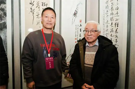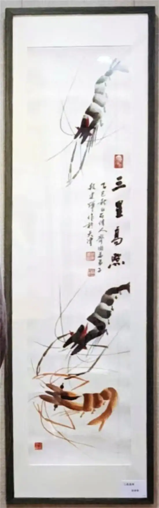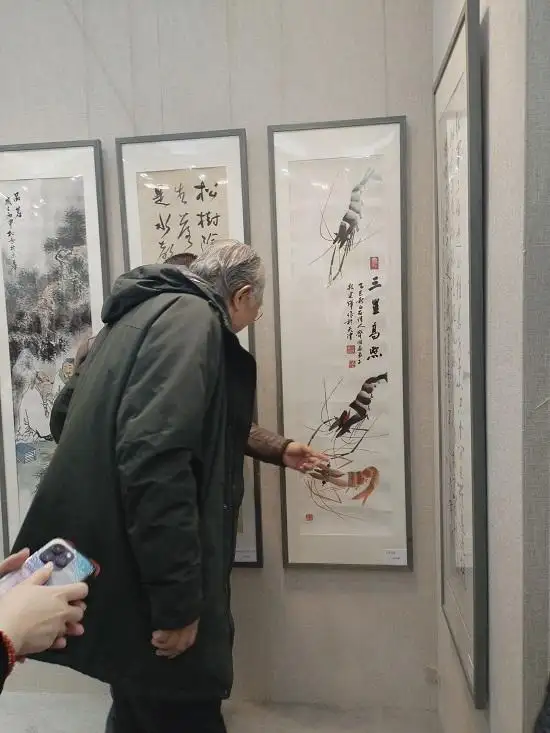 陈传席老师在彩虾《三星高照》作品停留欣赏,对段建辉齐白石彩虾很认可。