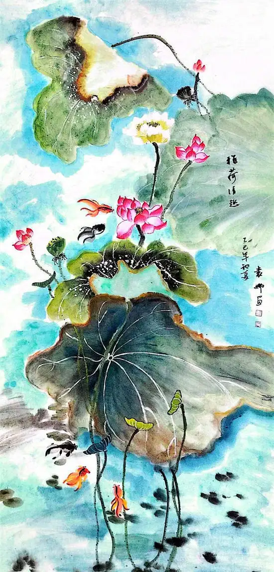 袁娜老师主要以花鸟为主,尤其是国花牡丹,盛开在笔墨之间的国画牡丹,气韵生动,色彩斑斓,将自然之美凝固在纸上,成为永恒的诗篇。还有国画荷花的艺术魅力独具匠心,构架巧妙,色彩斑斓,笔墨传神,每一笔都蕴含着深厚的文化底蕴。