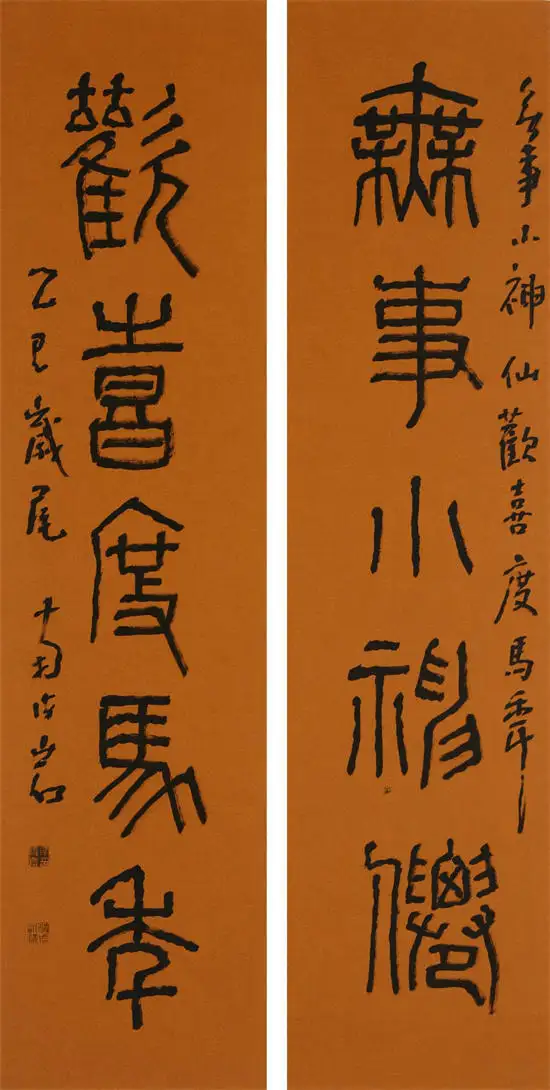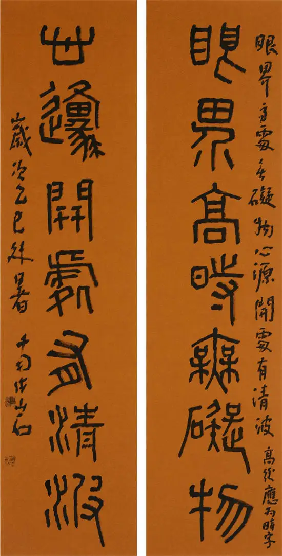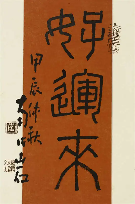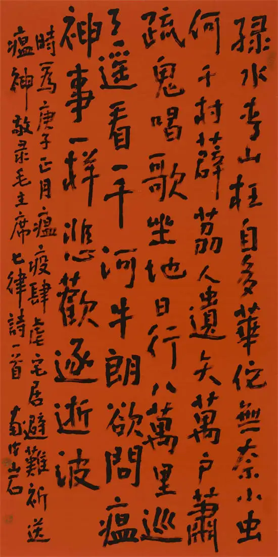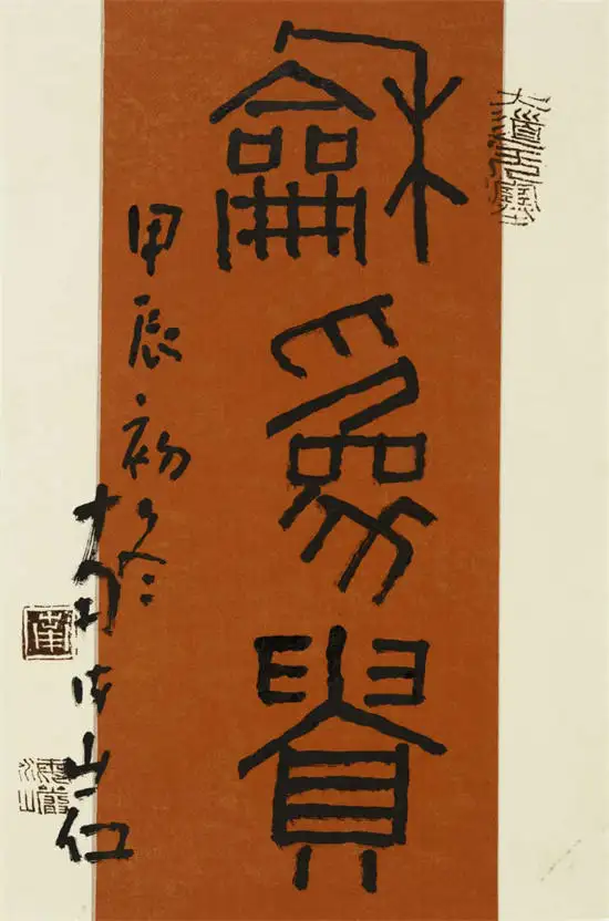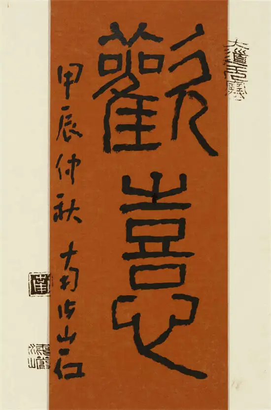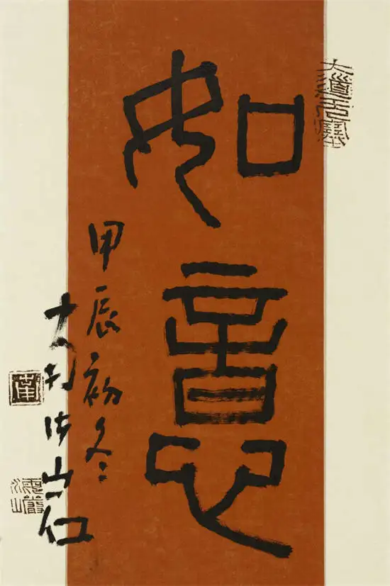 古人云:「书画同源」「书之妙道,神采为上,形质次之,兼之者方可绍于古人」。无疑,南海岩是真正理解这些话的。他虽为一位画家,却有着书家的担当,并无时不在努力锤炼着笔墨功夫,而今已取得了很大的成功。其实,他的书法作品里所呈现出来的丈夫气、金石味和帝王相,不正是最好的验证吗?不正是古今所有书家孜孜以求的神采吗?众所周知,书法中神采的获得,一方面依赖于创作技艺的精熟,另一方面取决于创作过程中的心手双畅,以及作者知识修养和审美趣味的自然焕发。不难看出,南海岩在进行书法创作时,一同满足了这两个方面的要求。因此在欣赏他的作品时我们会发现,无论从整体到局部,还是从局部到整体,无论是静态的接触,还是动态的阅读,无论是形象的获取,还是具象的领会,无论是表面的感观,还是内涵的外延,他的书法总能给人以美的享受,而这种美更多的是一种精神层面上的美,是一种直达心灵深处的大爱之美。