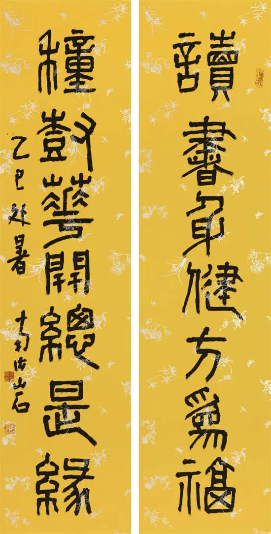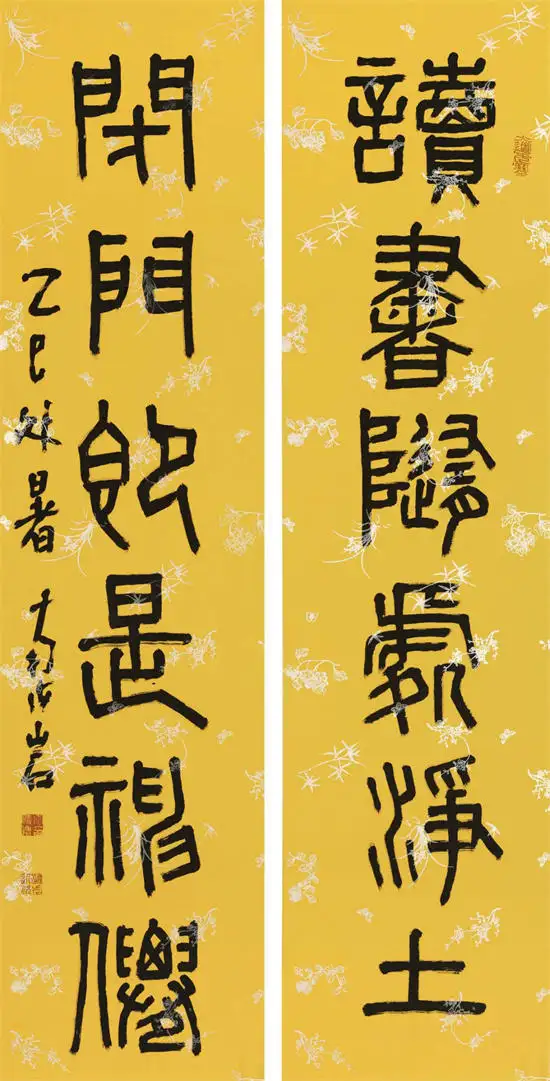 南先生看待书法有自己的认识,了解自己需要什么,在书法中应该得到什么。应该怎样表现等等。他常想,弘一法师有了对《张猛龙》的探习,才有了后来对于书法的静谧,可随心而书,吴昌硕有了对《石鼓文》的顿悟,才懂得了绘画的奥秘……一我的书法应有我的精神,我的个性,我的语言。一每个人有每个人的书体语言,如宋代的苏轼书体被称为一绵里襄铁一,近代山水大家黄宾虹认为写书法应像一「惟画沙」「屋漏痕」 近代书法家黄绮的书法被称为「折戟沉沙」:近代山水画大师李可染的书法被称为一酱当体一等等“细读南先生的书法,也可窥见一斑,其中的每一笔如老牛犁地,犁出的这条沟又深、又涩、又自然,我把他的这种书休感觉称为「犁耕力」。这种书法的表现既有传统含义,又有现代美感。是海岩先生多年来对于书法艺术积累的集中体现,是心灵深处的一种独白,是属于这个时代的产物。南海岩先生水墨重彩的精彩,离不开他书法造诣的深厚功力。这是一个毋庸置疑的事实。