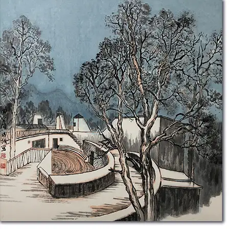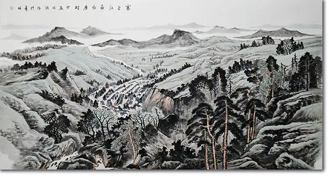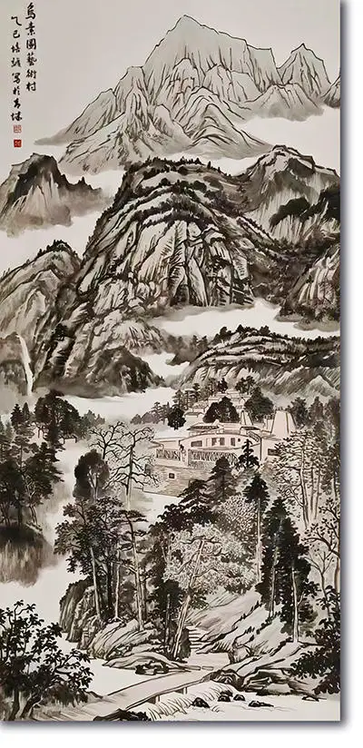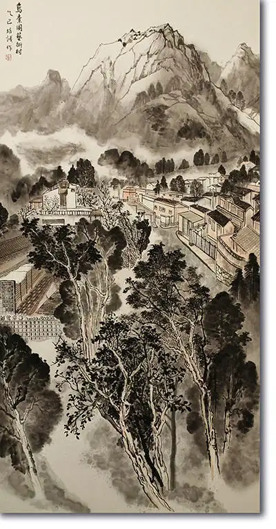 在当代中国画坛,以乡土与时代发展为创作母题的山水作品,往往是艺术家扎根现实、对话时代的重要表达。戴培诚的《乌素图艺术村》《塞上江南水磨村》等系列国画作品,以大青山南麓的乡村图景为描摹对象,将笔墨传统与乡村振兴的时代脉搏相融,在山水意境中铺展了乡土发展的新画卷,让传统山水画走出孤高的文人意趣,成为映照现实的时代镜鉴。