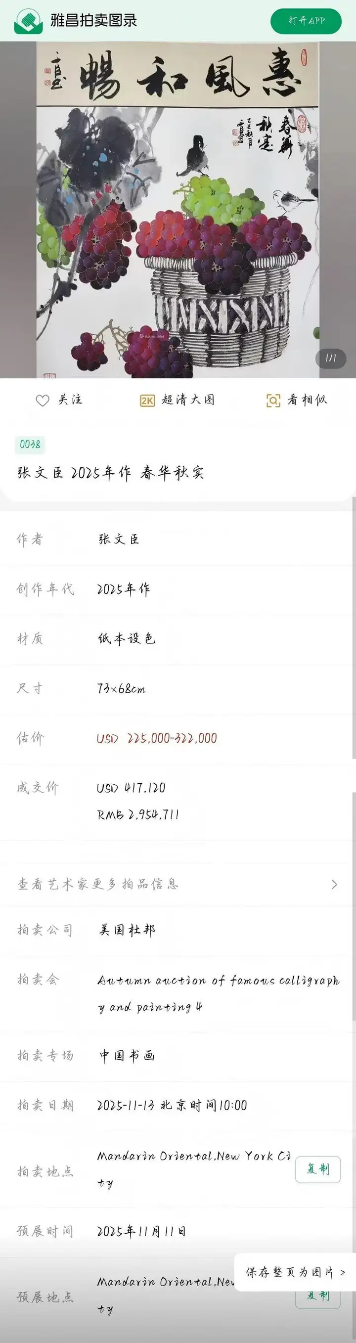 2023 年作品《万寿山圣景》被北京首都国际机场 T3 航站楼收藏并永久悬挂。