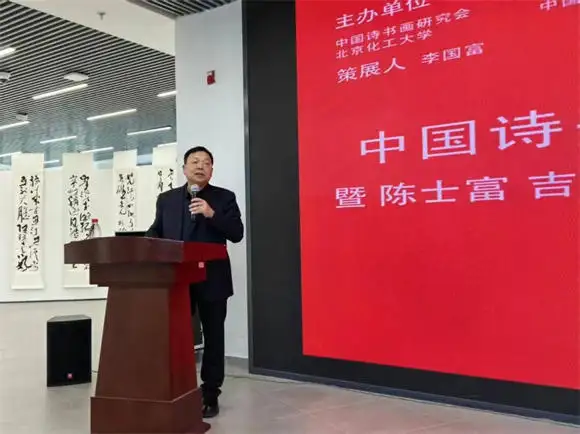 月18日,“中国诗书画校园行”走进北京化工大学暨书画作品展在该校昌平校区举办。中国诗书画研究会创会会长、军事博物馆原馆长陈士富将军出席并讲话。北京化工大学党委书记刘贵芹宣布展览开幕。活动由民进中央文化艺术委员会委员、中国诗书画研究会驻会副会长李国富主持。
